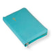 Keskikokoinen nahkaraamattu, turkoosi. Reunahakemisto, vetoketju ja kultasyrjä. 92-käännös.